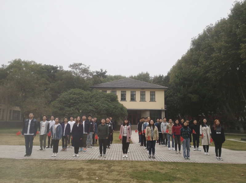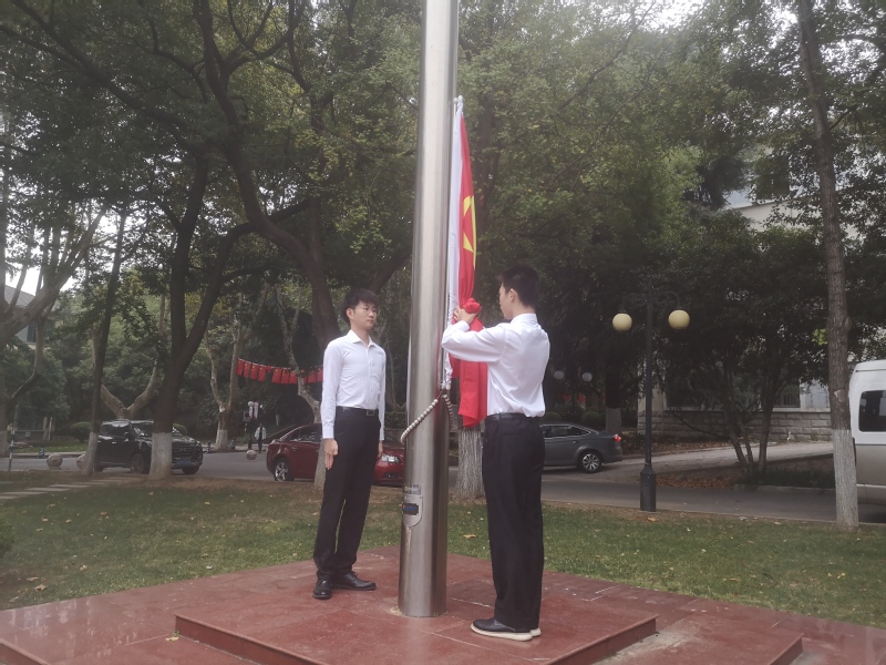 2019年10月8日早上7点20分,NT动漫 NT动漫 2017级港航2班全体成员在本部工程馆前举行升旗仪式。