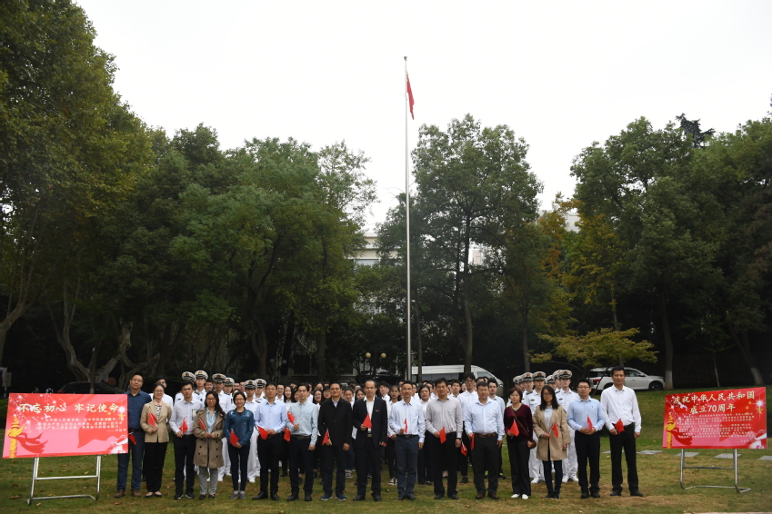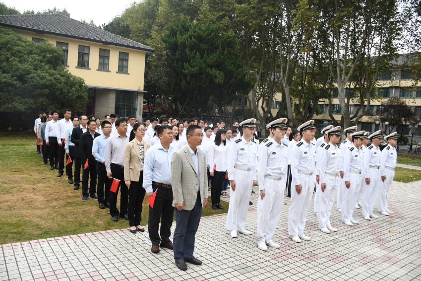 2019年10月14日早上7点20分,NT动漫 NT动漫 在本部工程馆前举行“不忘初心、牢记使命”主题升旗仪式。仪式由学院党委姜海霞副书记主持,参加本次升旗仪式的有学院领导班子成员、海工所全体教师党员、全体教工党支部书记、教师党员代表、学生党员代表以及2016级全体国防生。