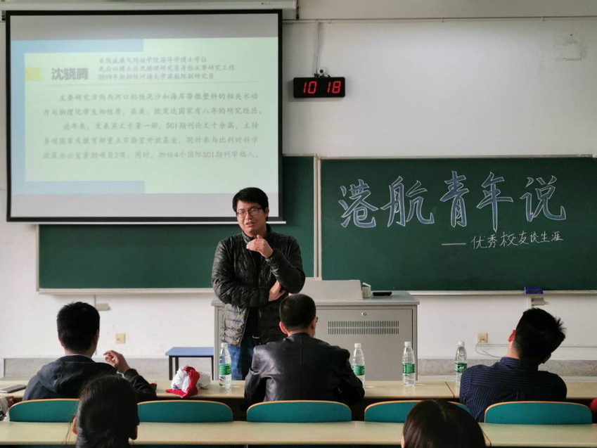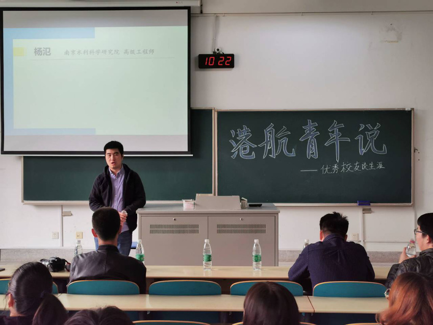 王衡分享了他对于工程一线的心得,如在施工现场要把握学习时间,锻炼自身交流能力,并有目的有规划地进行相关专业规范的了解。他强调,不管身处何地,最重要的是港航人的传承感,我们要做一名有责任担当、有追求的港航人。