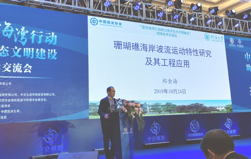 2019年10月24日至25日, 中国“蓝色海湾行动助力海洋生态文明建设”现场技术交流会在广东汕头顺利召开。NT动漫 郑金海教授、诸裕良教授、张弛教授、农业工程学院陈立华副教授参加了本次会议。郑金海教授作为特邀嘉宾作了“珊瑚礁海岸波流运动特性研究及其工程应用”的报告,诸裕良教授作了“航道疏浚沙土的资源化利用研究”的报告、张弛教授作了“日照人工沙滩现场观测”的报告,陈立华副教授作了“海岸带植被建设的工程生物技术研究”的报告,与来自国家疏浚行业、海岸工程、海洋科学等领域专家学者进行了深入交流和探讨。