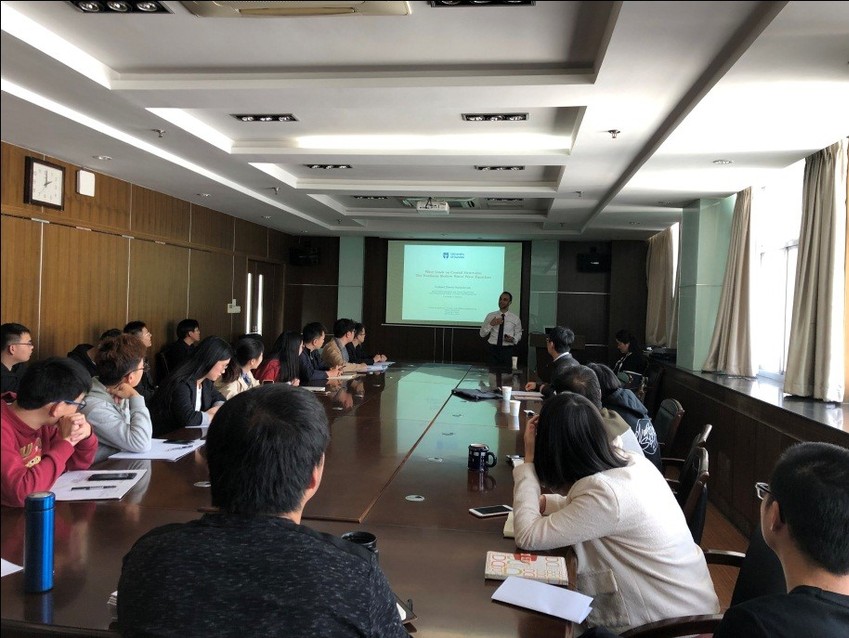 2019年10月30日英国邓迪大学教授Masoud Hayatdavoodi应张继生教授邀请来NT动漫 开展学术交流。Masoud教授作了题为“Wave Loads on Coastal Structures: The Nonlinear Shallow Water Wave Equations”的学术报告,介绍了非线性浅水方程在计算作用在海岸结构物的波浪力的最新研究进展。报告会由陶爱峰教授主持,会后,Masoud教授与现场相关专业老师和学生进行了深入探讨。