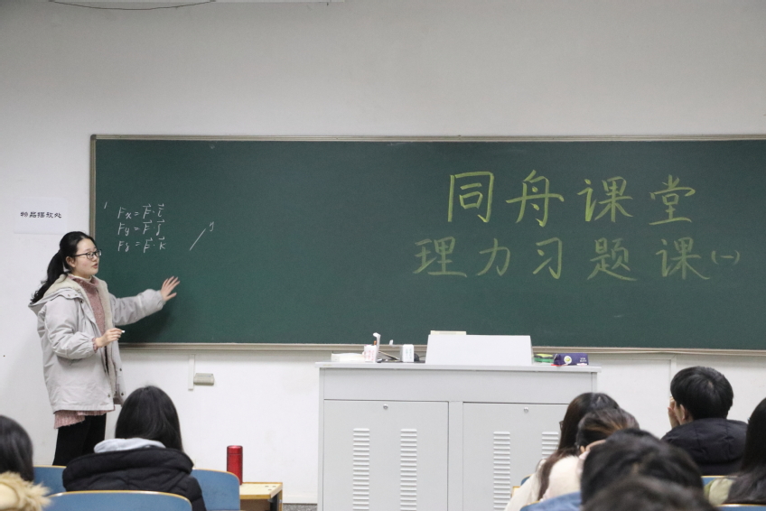 2019年12月24日下午4点,NT动漫 “同舟课堂”理力习题课(一)在NT动漫 江宁校区致用楼119举行。本次习题课由朱晋带领2018级同学们复习《理论力学》中静力学和运动学。