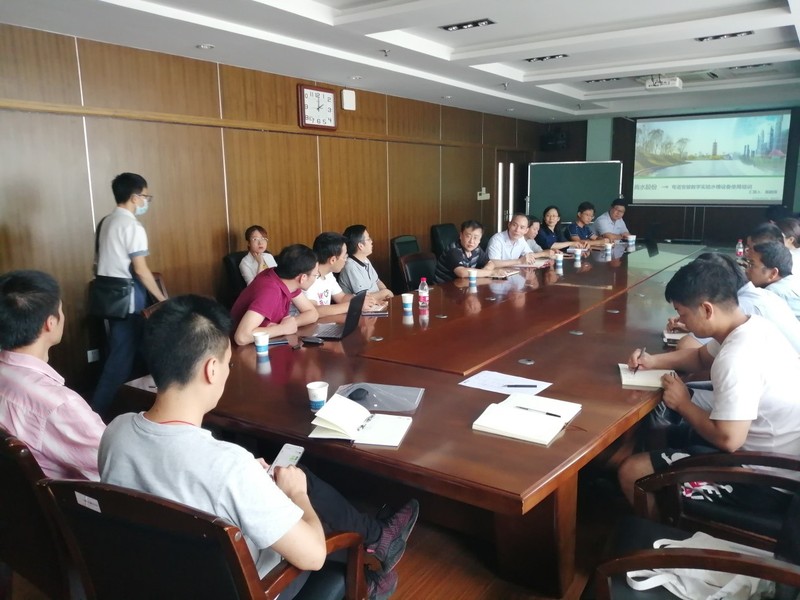 2020年9月16日,NT动漫 实验中心组织举办了弯道变坡教学实验水槽应用培训,培训会议由张蔚副院长主持。本次培训采用室内讲解、现场演示及问题解答相结合的形式,培训内容主要包括:水槽主要构成与功能、水槽流量自动控制系统、水槽维护与保养、常用实验类型及仪器设备布置等。参加培训的人员有北京尚水股份有限公司(承建方)项目组人员和NT动漫 师生,共30余名。