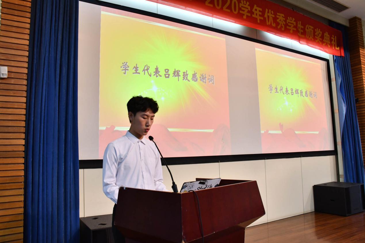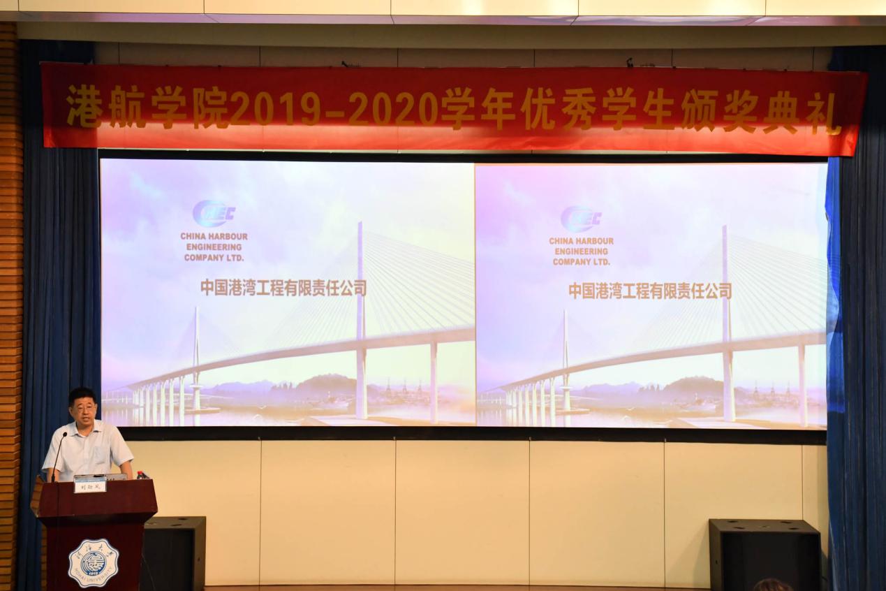 刘劲风副总经理和学院领导共同为优秀学生代表颁奖,刘劲风副总经理专门为获得“中国港湾奖(助)学金”的同学代表颁发荣誉证书。吕辉同学作为获奖学生代表向中国港湾工程有限公司致感谢辞。
