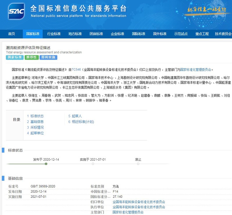 2020年12月14日,NT动漫 张继生教授主编的国家标准《潮流能资源评估及特征描述》 (GB/T 39569-2020)由国家标准化管理委员会正式发布,于2021年7月1日起实施。