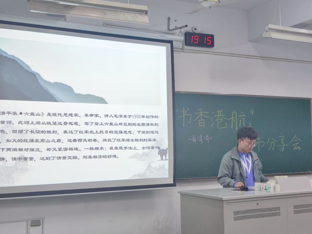 活动前期引导学生阅读主题教育读物,查阅音像资料,开展党史学习。20级港航2班的杨彦分享了巧渡金沙江和强渡大渡河的故事,剖析了两场战役体现的精神实质。20级港航3班的毛润宇着重表达了他在阅读后理解的长征精神对当前生活的指导意义。20级港航5班的何奥林通过腊子口的地形,再现了当时红军的激烈战斗。20级海资1班的李良基于长征精神的精神内核,结合当下热点,分析了中国人民在抗击疫情时传承的长征精神。