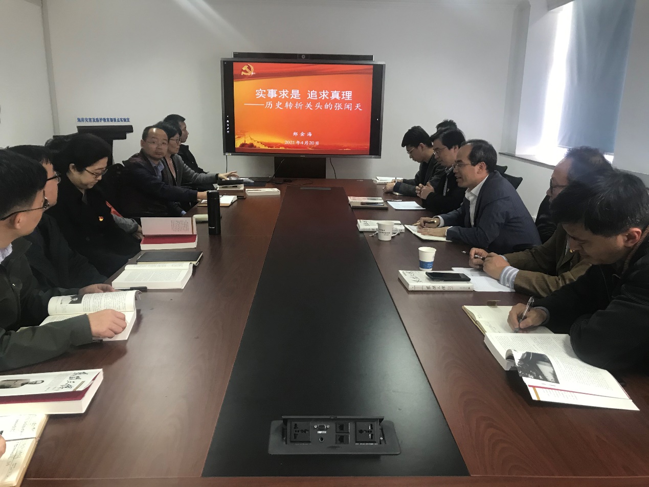 4月20日下午,海岸及海洋工程研究所党支部举行党史学习教育专题学习会。郑金海教授作题为“实事求是 追求真理——历史转折中的张闻天”的主题党课,学院党委胡忠华书记参加了学习会。