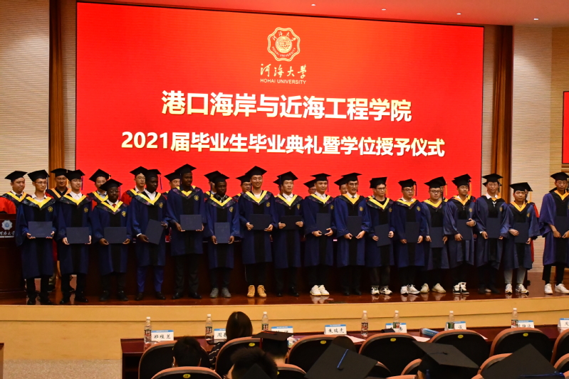 毕业生代表2018级硕士生冯辉同学通过回顾在河海经历的点滴成长与收获,表达了2021届全体毕业生对母校的依依惜别之情和对老师的崇高敬意,并表示新时代是奋斗者的时代,是青年的时代,生逢伟大时代,需全体毕业生以河海校训共勉,以实干担当为荣,成就更加开阔的人生。