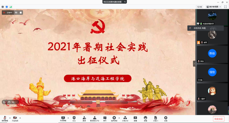 为引导和帮助广大青年学生在社会课堂中上好“大思政课”,通过社会实践加强改进大学生思想政治教育、深化爱国主义教育,2021年7月11日晚8点,NT动漫 通过腾讯会议举行暑期“三下乡”社会实践活动出征仪式,学院2020级辅导员林晨老师主持仪式。