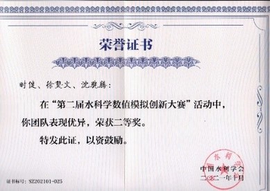 近日,由中国水利学会、NT动漫 、中国水利水电科学研究院等联合举办的2021年第二届水科学数值模拟创新大赛公布了获奖名单。本次大赛分为流域径流预报、河道水动力模拟、城市内涝模拟及河口区水动力模拟四个类别,按在校学生和青年科技者组分别比赛。经大赛专家委员会评审,最终评出全日制在校学生组一等奖4项、二等奖15项、三等奖24项、优胜奖40项;青年科技工作者一等奖2项、二等奖4项、三等奖6项、优胜奖9项。NT动漫 教师组成的2支青年科技工作者参赛队伍均入围决赛,经大赛线上答辩,熊焱与童林龙老师组成的队伍获“城市内涝模拟”组次一等奖,由时健、徐龑文与沈骁腾老师组成的队伍获“河口区水动力模拟”组次二等奖。