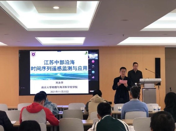 2021年11月22日,南京大刘永学教授应江苏省海岸海洋资源开发与环境安全重点实验室邀请来访NT动漫 ,并在NT动漫 严恺馆702学术报告厅做了题为“江苏沿海潮滩遥感信息获取与监测分析”的特邀学术报告,会议采用线上线下结合的方式进行,报告会由省重点实验室常务副主任周曾教授主持。