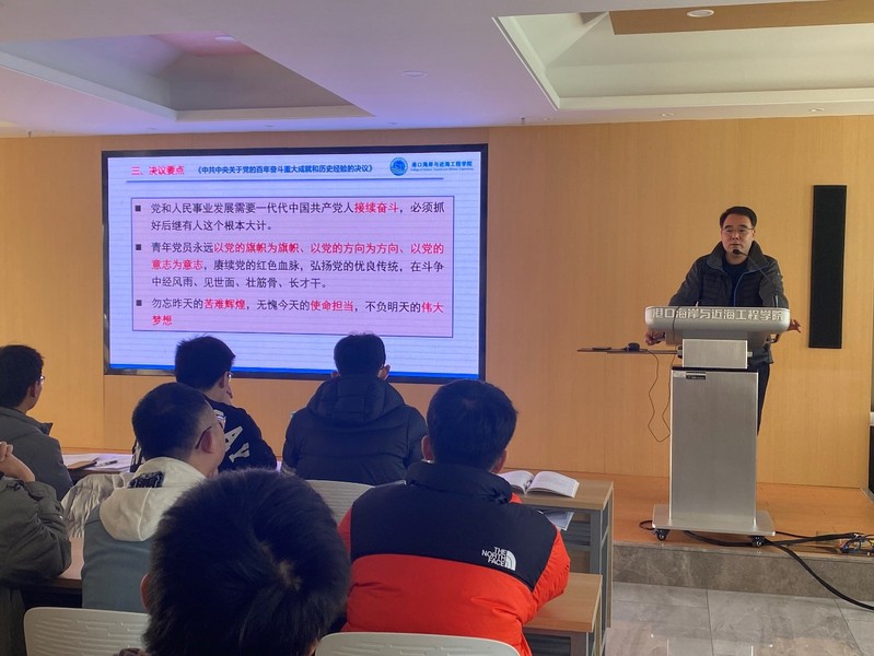 11月26日,NT动漫 党委沈国军副书记在严恺馆702为NT动漫 本科生第一党支部讲授“深入学习贯彻党的十九届六中全会”专题党课。