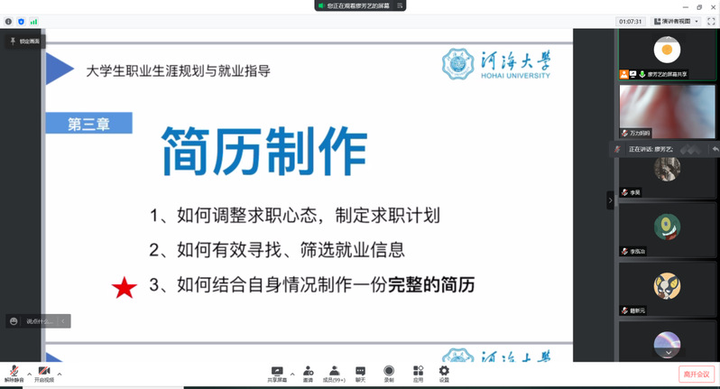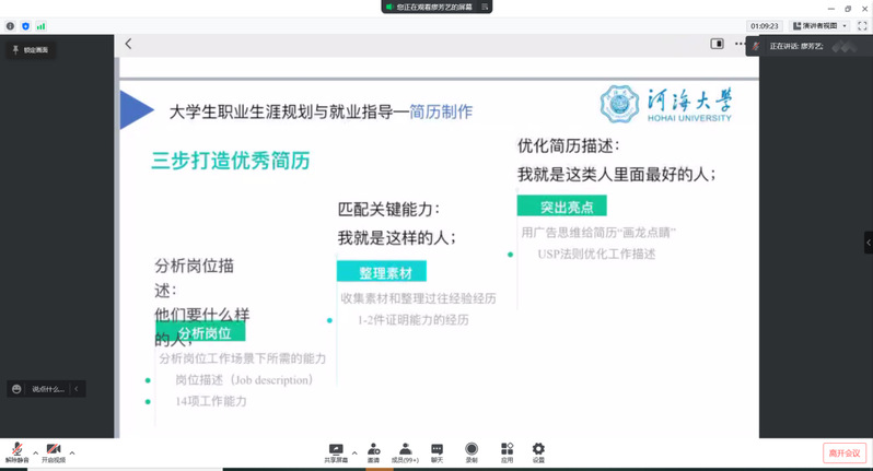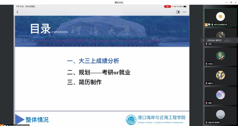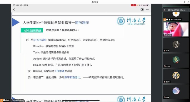 2022年3月4日下午,NT动漫 2019级在线上开展职业生涯规划和简历制作培训会。大会由2019级本科生辅导员廖芳艺主持,2019级全体学生及家长参加本次大会。廖芳艺老师就年级整体学习情况、大三学年生涯规划、简历制作培训进行分享。