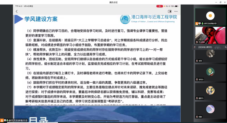 会议通过横向分析学生大三上学习成绩、纵向班级对比,重点分析学生不同课程通过情况,肯定学生在学习上呈现出稳中有进的总趋势。针对目前学生存在的学习积极性不高、对升学就业有焦虑情绪等问题,廖老师从六方面分析了具体原因,新学期的学风建设方案将从查漏补缺、精准帮扶、良性竞争、团结互助等方面开展学风建设。