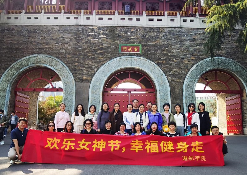 下午两点,阳光明媚,在学院党委副书记沈国军带领下,参加活动的女教工在玄武门集合,以玄武门为起点,经菱洲到解放门,顺城墙步行返回玄武门解散,全程4公里。