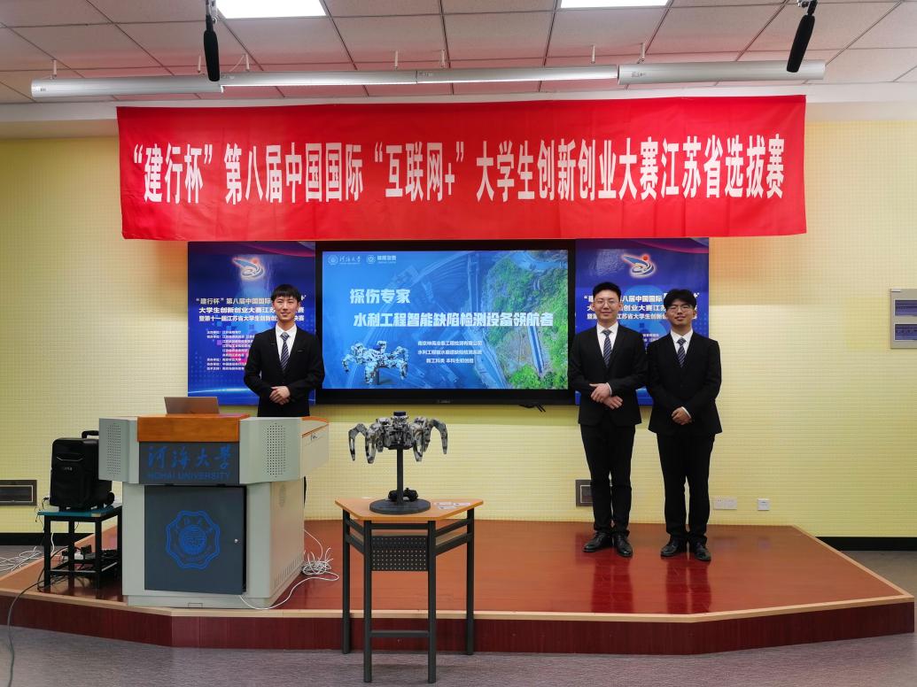 在主赛道本科生初创组,由张蔚、廖芳艺、林晨等老师指导,NT动漫 2018级本科生吕辉、2019级本科生杜雨昂、2019级本科生李昊、2020级本科生陈家骥等同学共同完成的创新创业项目《探伤专家——水利工程智能缺陷检测设备领航者》获得大赛一等奖。