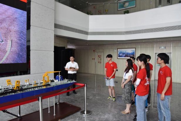 座谈交流后,实践团参观了广航展馆,并从“广航志、广航业、广航誉、广航博”四个方面全面系统地了解了中交广航局的发展历程和重大成就,感受到了广航悠久的历史底蕴和新时代焕发出新的勃勃生机。