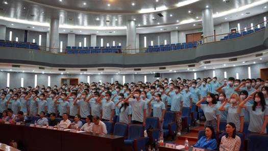 最后,NT动漫 2022级本科生辅导员顾钰恒带领全体同学宣誓《做一名优秀的港航人》。典礼在校歌声中落下帷幕。