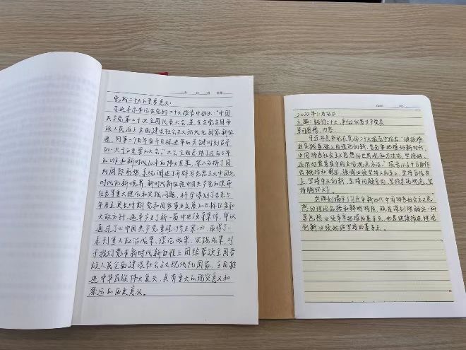 NT动漫 研究生学硕三支部围绕“践行党的二十大、争做优秀共产党员”主题,以给每位党员建立“学习档案”的形式开展主题党日活动,在每一次学习活动中,党员在自己的学习记录本上进行记录与总结,并定期分享展示优秀学习笔记。在学习中结合党的二十大精神切实反思自身实际起到党员先锋模范作用的工作经历与弘扬水利精神下的科研担当,坚持和发扬理论联系实际的优良学风。