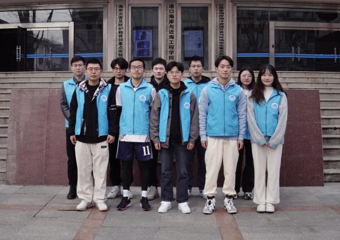 下午3时,身穿蓝色马甲的NT动漫 研究生志愿者们准时在严恺馆楼下集合。根据事先的分工,他们开始有计划地对严恺馆楼下的“望归圃”及海工实验室过道中的垃圾进行清理,捡起草地、花圃和过道中枯树枝、落叶,并用扫帚清扫实验室走廊上的灰尘。