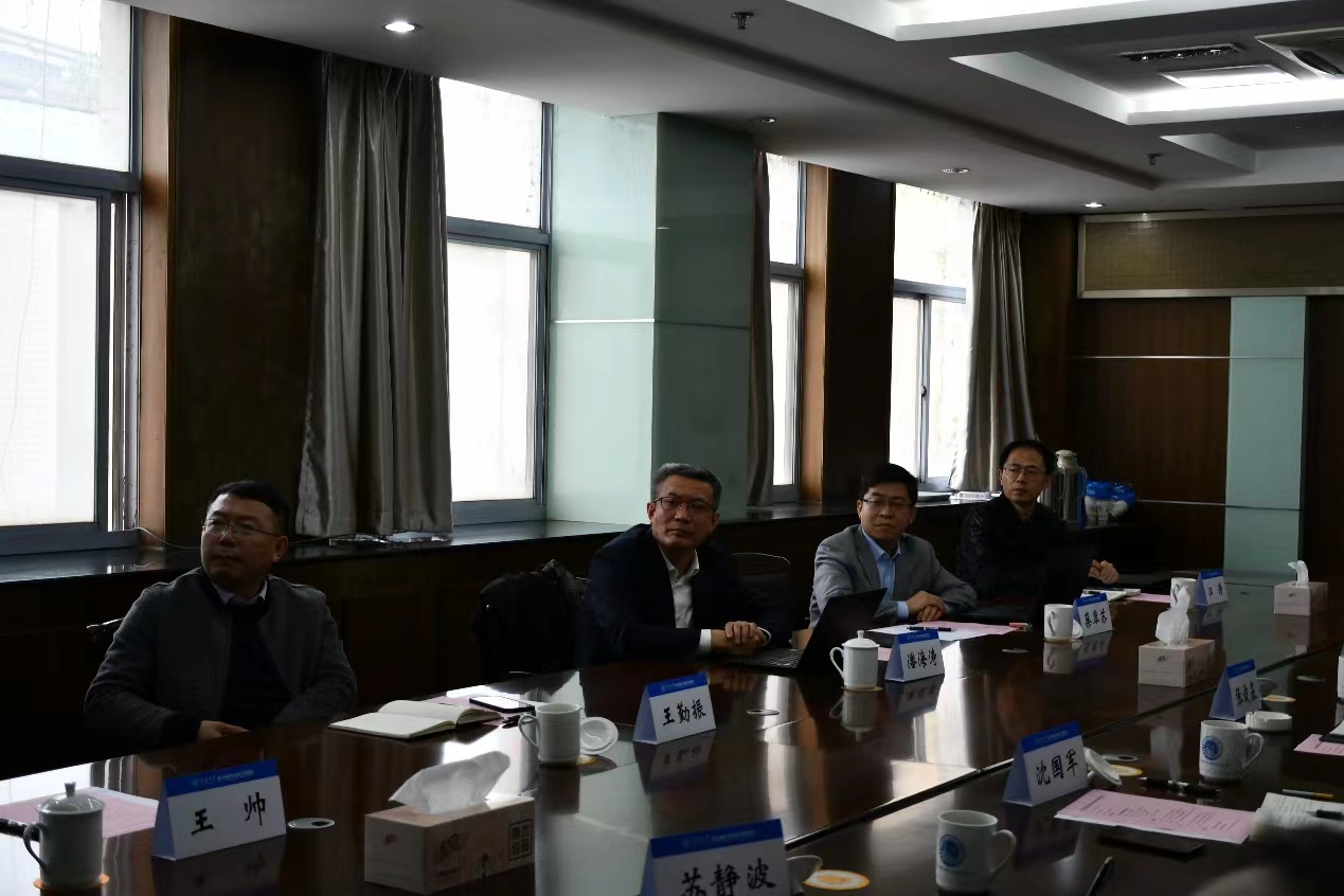 3月29日下午,中交水运规划设计院有限公司副总经理潘海涛、设计二所(内河院)所长蔡翠苏、南京分公司总经理王勤振、所总工程师江涛、研发中西主任王帅(线上参会)一行四人来NT动漫 交流访问。学院党委书记张俊基、党委副书记沈国军、长江保护与绿色发展研究院副院长诸裕良、工程CAD与图学研究所所长苏静波、研究员侯利军、辅导员林凡、廖芳艺参与交流。会议由张俊基书记主持。