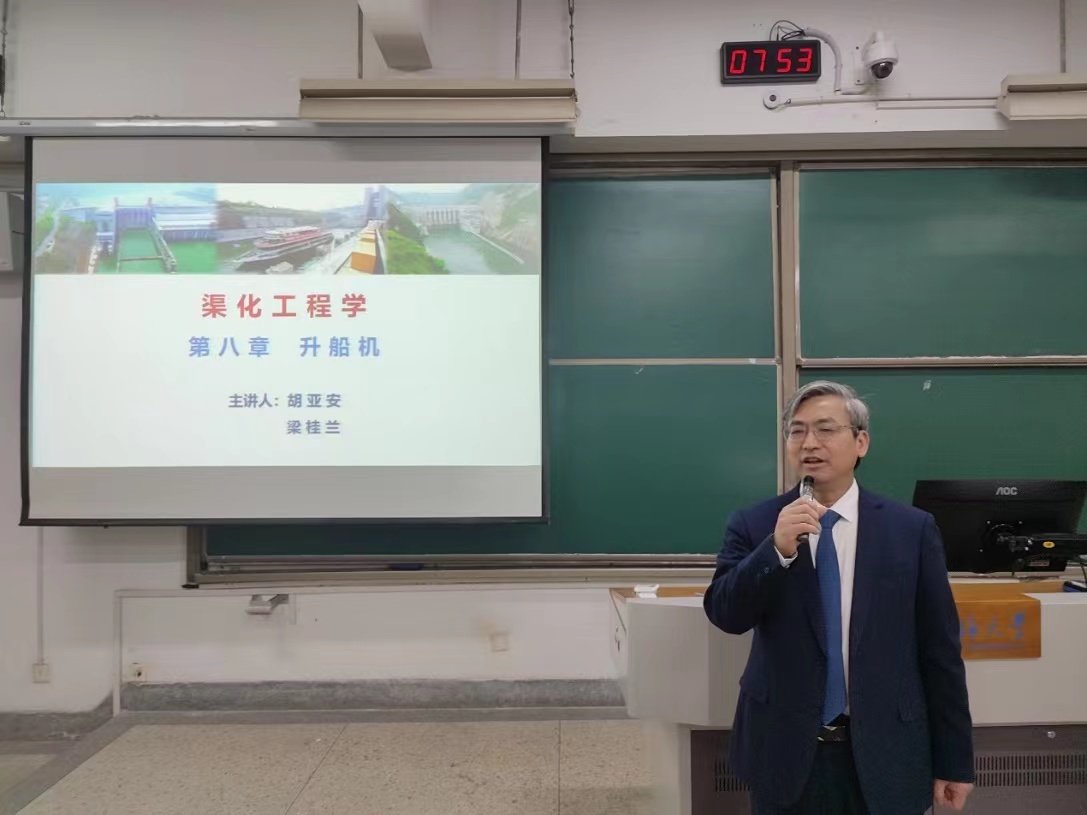 胡院士结合我国最新的大型渠化工程实例,通过实地录制的升船机运行视频与三维模型动画,为同学们演示了升船机的结构组成、工作原理和运行流程,将数字化等先进的教学手段与前沿科技巧妙融合进课程教学中。同时,胡院士将我国大型水利工程中的国之重器建设历史使命与责任担当等思政教育全方位贯穿、深层次融入课程,通过总结我国内河航运的发展规划蓝图,鼓励同学们锤炼意志品质、扎实专业学识,投身祖国水利事业的转型升级,让课程思政发挥协同效应。