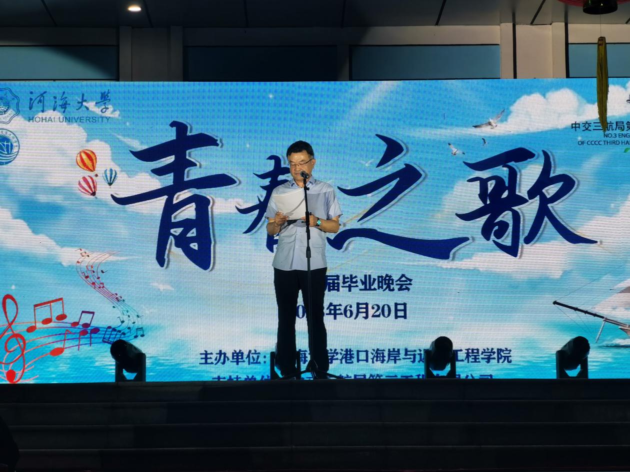 中交三航局第三工程有限公司副总经理、港航专业校友张雷表达了对母校学院培育之恩的感谢,同时张总也感谢多年来学院为公司发展输送了很多优秀人才。他祝福毕业生们能拥有丰富精彩的人生,希望在未来能够持续深化合作,不断提高人才培养质量。