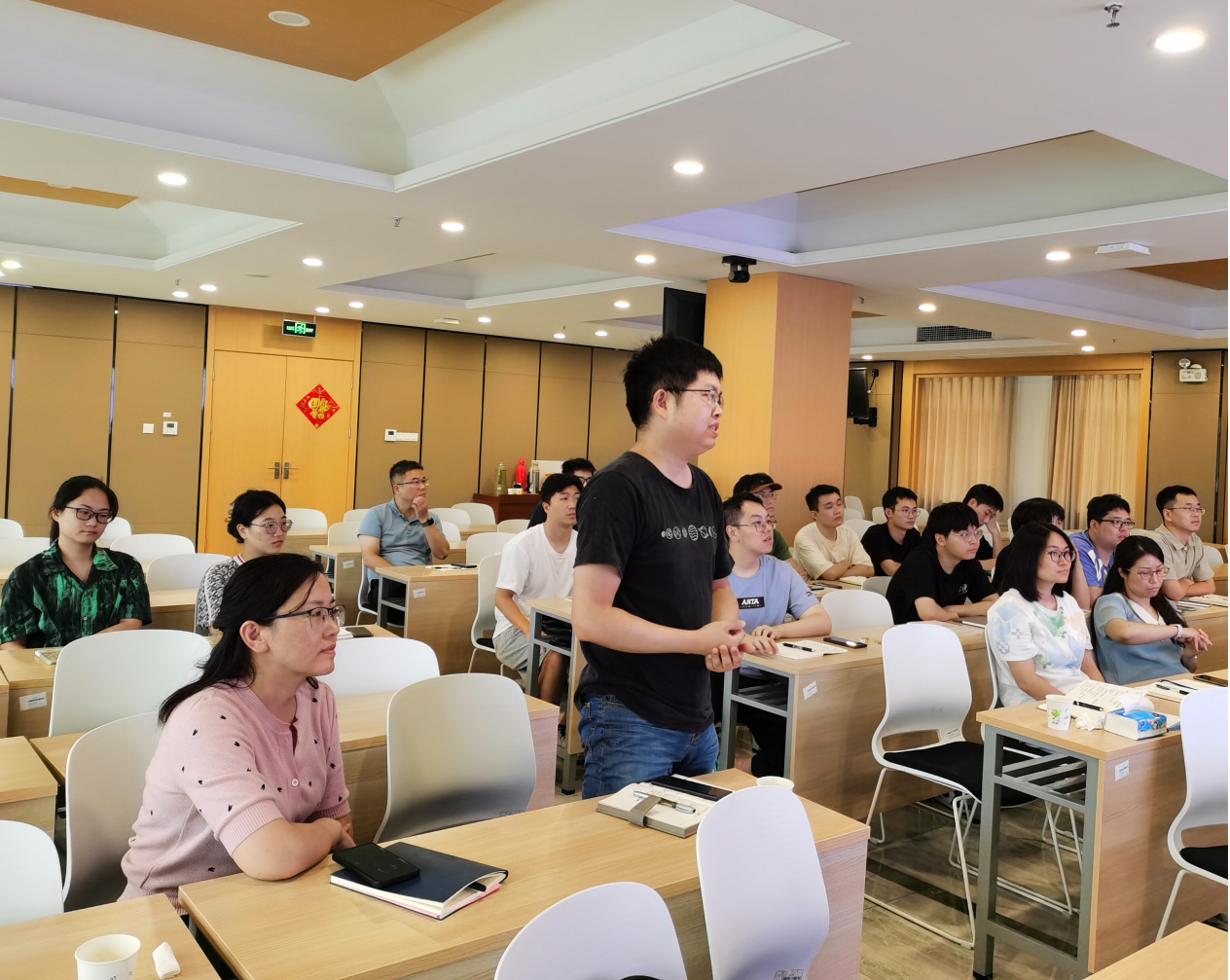 报告结束后,申锦瑜教授与参会师生就“海流-波浪耦合时间尺度差异”和“粒子追踪模型应用”等问题进行了深入探讨,取得了良好的学术交流效果。