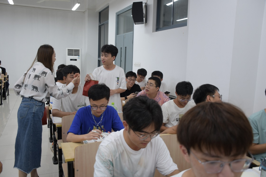 27日晚,为庆祝即将到来的中秋国庆佳节,23级辅导员廖芳艺在晚自习前到达自习教室,为NT动漫 全体新生准备了节日惊喜,向每位同学送出河海月饼,并表达了对同学们的美好祝愿与殷切期盼