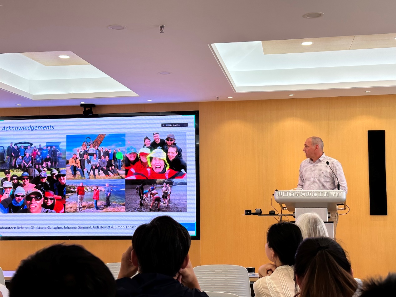 Conrad Pilditch教授的报告通过在新西兰15个河口的24个地点进行的现场实验,调查了沿海地区两种重要压力源(陆源的营养物质和沉积物)对生物多样性和生态系统功能的影响。通过生态相互作用网络分析探究了浊度是如何削弱以关键贝类物种为代表的生态系统功能,以及河口生态系统受到的富营养化的影响。