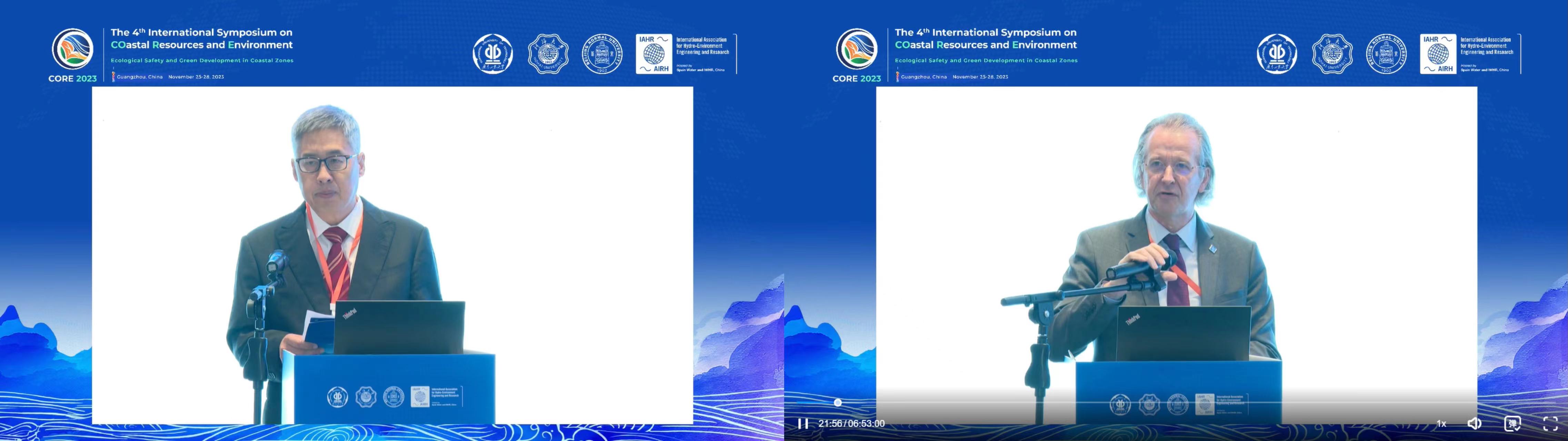 2023年11月25-28日,第四届海岸带资源与环境国际学术研讨会(The 4th International Symposium on COastal Resources and Environment, CORE2023)在广州顺利召开,大会主题为Ecological Safety and Green Development in Coastal Zones(海岸带生态安全与绿色发展)。中国工程院院士杨志峰教授与国际水利与环境工程学会(IAHR)主席Philippe Gourbesville教授出席并致开幕词。中国工程院院士潘德炉教授、英国皇家工程院院士Joseph Hun-wei Lee教授、英国皇家工程院院士Ian Townend教授,以及来自10多个国家、60多个科研单位的150多名专家学者参加了本次研讨会。