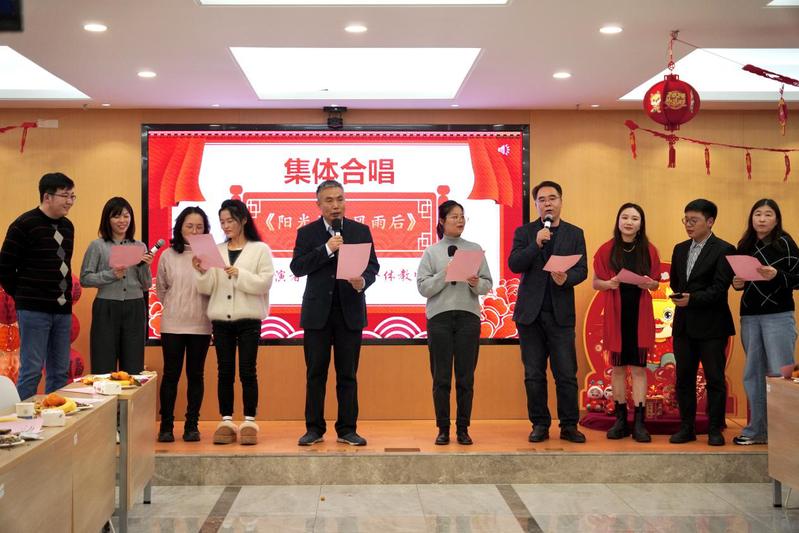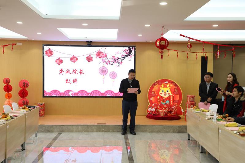 联欢会开始前,龚政院长回顾了一年来学院取得的丰硕的成果,对新的一年学院工作做出展望,并代表学院领导班子向每一位师生员工致以衷心感谢和崇高敬意。各个系所的老师们欢聚一堂,老师们精心排演,准备了精彩纷呈的文艺表演。游戏环节老师们积极互动,台上各显神通,台下开怀大笑,现场气氛热烈,广大教职工在欢声笑语中回首丰收喜悦,展望美好未来。