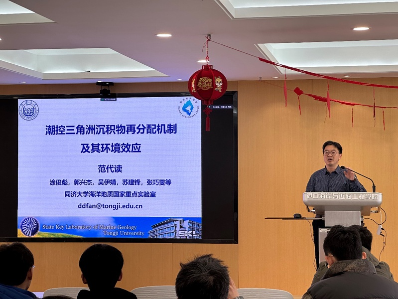 范代读教授的报告则聚焦于潮控三角洲沉积物再分配与碳循环的研究,揭示了河口-陆架系统在全球碳循环中的重要作用,尤其是沉积有机碳的埋藏与再矿化过程。通过案例分析长江三角洲的冲淤变化,讨论了大型水坝建设对沉积物和碳循环的影响,以及人类活动如何改变陆源有机碳的循环路径。通过现场观测与理论模型,展示了陆源有机碳丢失的机制,以及潮汐、沉积物和生物地球化学过程在碳循环中的交互作用。