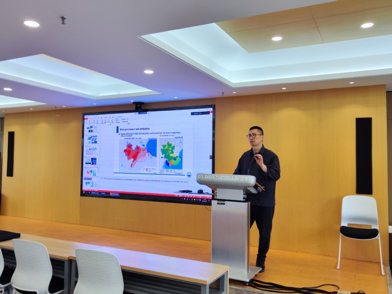 张尧研究员主要介绍了我国沿海地区海洋灾害风险全过程防范治理的基本情况,探讨了风暴潮、海浪、海啸、裂流等海洋灾害的形成机制及其对人类活动的影响,阐述了目前全国海洋灾害风险普查的工作内容和技术方法,分享了自然资源部海洋减灾中心在致灾调查与评估、重点隐患调查与评估、风险评估与区域划分等方面取得的阶段性成果。报告结束后,张尧研究员与参会师生就海洋灾害防范治理的发展趋势与技术需求等进行了深入探讨,取得了很好的交流效果。