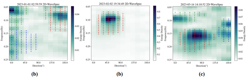 研究团队提出了一种新的波谱自动分区方法——物理信息的Vision Transformer生成对抗网络(PI-ViT-GAN),利用CFOSAT卫星波谱数据。首先通过实施卫星谱数据增强(图1)的对比预训练使模型初步获得捕捉谱特征能力和一定的抗噪声能力(图2)。之后该模型通过视觉转换器(ViT)的自我注意机制,专注于波谱的关键部分,提取波组特征和波元参数。分区头的联合训练实现了波组分区元素指数的输出,而判别器则使用波组特征和参数模型重建波谱,计算与原始观测波谱的误差,以评估分区和重建效果(图4)。此外,该模型整合了两种物理校正功能:波系统分类损失和合并损失,这两种损失都基于波龄标准,指导训练过程并提高模型效率。研究结果表明,通过这种方法重建的理论波谱与原始海浪谱非常吻合(图5),精确度优于CFOSAT自身的SWIM光谱分区产品(图3)。这项工作不仅展示了深度学习技术在海洋和海岸工程领域的应用潜力,还为大数据分析提供了一种新的、可扩展的方法。这种方法能够帮助科研人员更好地理解和预测海洋环境中的复杂物理过程,从而为海岸防护措施的设计和实施提供科学依据。