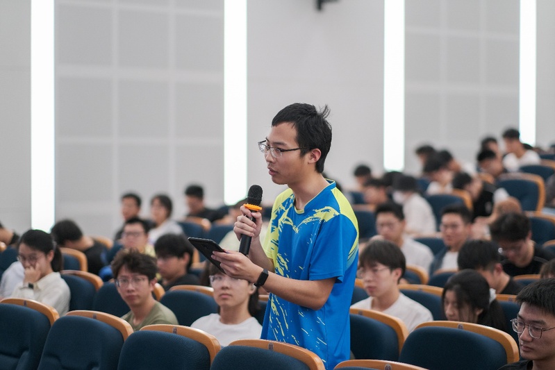现场提问环节中,同学们表现出极大的热情,积极提问、踊跃发言,与两位校友进行了深入的交流互动。学生代表为校友赠送纪念品。