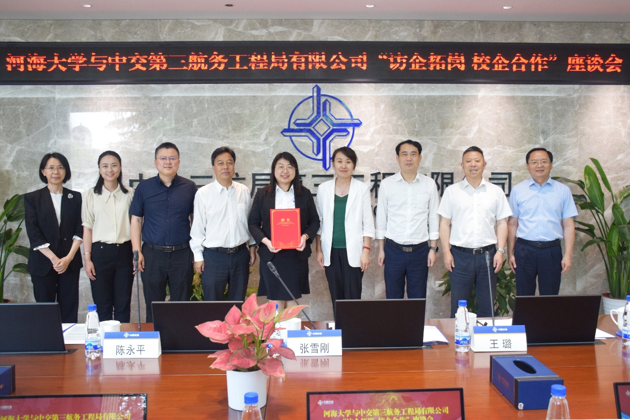 5月24日,NT动漫 党委书记张雪刚带队赴中交三航局三公司开展“访企拓岗”交流活动。三航局党委组织部部长、人力资源部总经理尤华慧,三航局党委组织部副部长、人力资源部副总经理梁艳娇,三公司党委书记、执行董事、总经理陈广湖,NT动漫 学生处副处长王璐,NT动漫 副院长陈永平,学院党委副书记王玲及双方相关负责人一同参加。会议由三航局三公司公司党委副书记、纪委书记、工会主席孔国东主持。