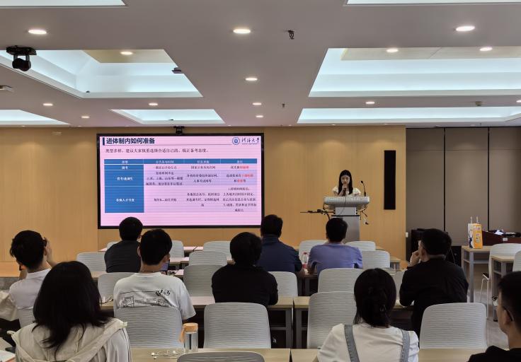 杨婧、王妍、范琦琦、赵越等四位2024届硕士毕业生结合求职过程中的心得体会向低年级研究生和本科生代表分享了经验方法。即将入职中国电建集团西北勘测设计研究院有限公司的船海专业杨婧分享了获取设计院的招聘信息渠道以及简历制作经验,此外还结合备考公务员的经历带领在场同学分析了当前江苏考公形势以及机遇挑战。已经通过行业内多个事业单位考核的土木水利专业硕士王妍分享了大量的公务员事业单位岗位信息获取渠道,结合自身在笔试和面试方面的经验建议有这类规划的同学们早做准备。