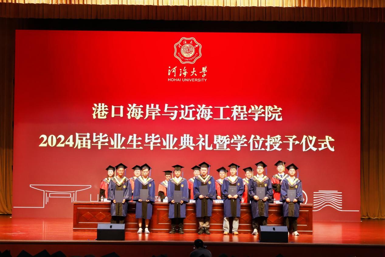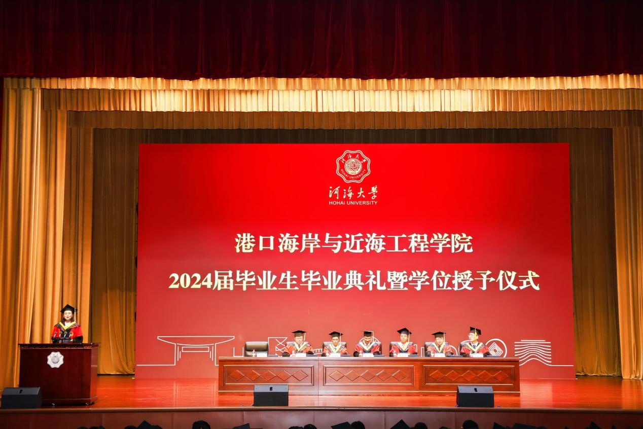 6月21日下午,NT动漫 2024届毕业生毕业典礼暨学位授予仪式在河海会堂隆重举行。典礼特邀中交第三航务工程局有限公司及分公司代表出席典礼,NT动漫 院长龚政教授向毕业生寄语,NT动漫 党委书记张雪刚,大禹学院副院长、党委副书记金光球,NT动漫 副院长张蔚、陈永平、管大为,各系所负责人、班导师代表、全体辅导员,2024届毕业生及部分家长代表参加典礼,典礼由NT动漫 党委副书记王玲主持。