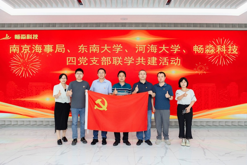 活动伊始,NT动漫 、南京海事局、东南大学、畅淼科技的四党支部代表共同参观了畅淼科技公司,并听取了畅淼科技智慧水运发展历程的介绍。随后,南京海事局装备信息处三级高级主办徐斌和四级主办刘梦阳详述了南京海事局智慧化管理业务及需求创新举措,东南大学信息科学与工程学院党委副书记兼副院长王婧菲和副院长兼党支部书记安良介绍了信息学科发展及人才培养的历程,NT动漫 党委书记张雪刚、海岸建筑与防护工程研究所所长孔俊、党支部书记黄惠明分别介绍了港航学科建设及人才培养和党建科研协同创新的发展历程,畅淼科技董事长杨正详述了以人工智能技术为核心的智慧水运解决方案。同时,各党支部还就海事部门、高校及企业党建工作、科研创新的交互及特色等方面进行了热烈而深入的交流和座谈,共同表达了再接再厉、协同发展、联合创新的意愿。