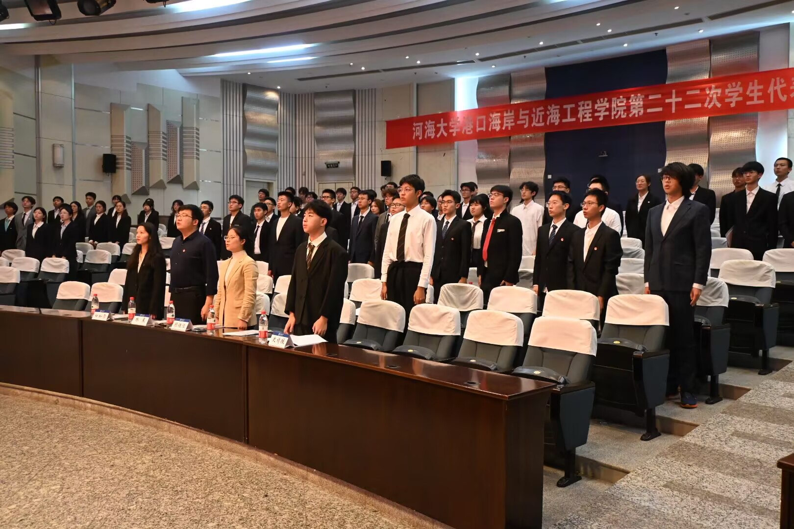 在顺利完成大会各项议程之后,大会在校歌声中圆满结束。本次学生代表大会总结过去一年工作,明确未来工作方向。新一届主席团和部长团也将在学校和学院党委的带领下,为学院的发展贡献更多力量。