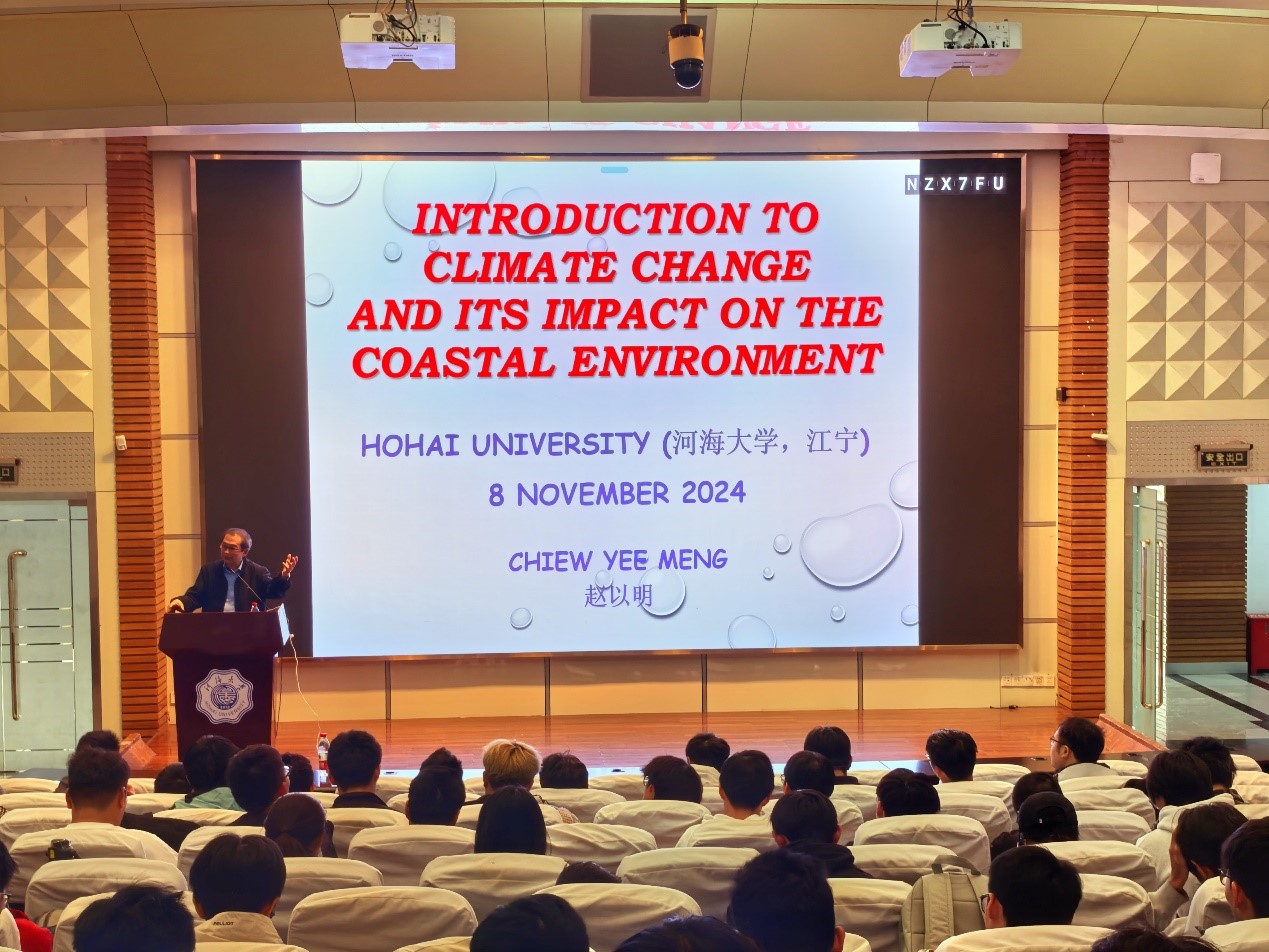 11月8日,NT动漫 在江宁会议中心二楼举行了学术报告会,邀请了南洋理工大学Chiew Yee Meng教授带来题为《Introduction to Climate Change and Its Impact on the Coastal Environment》的讲座。学院2022级学生及2024级新生参加,活动由2024级辅导员林晨主持。