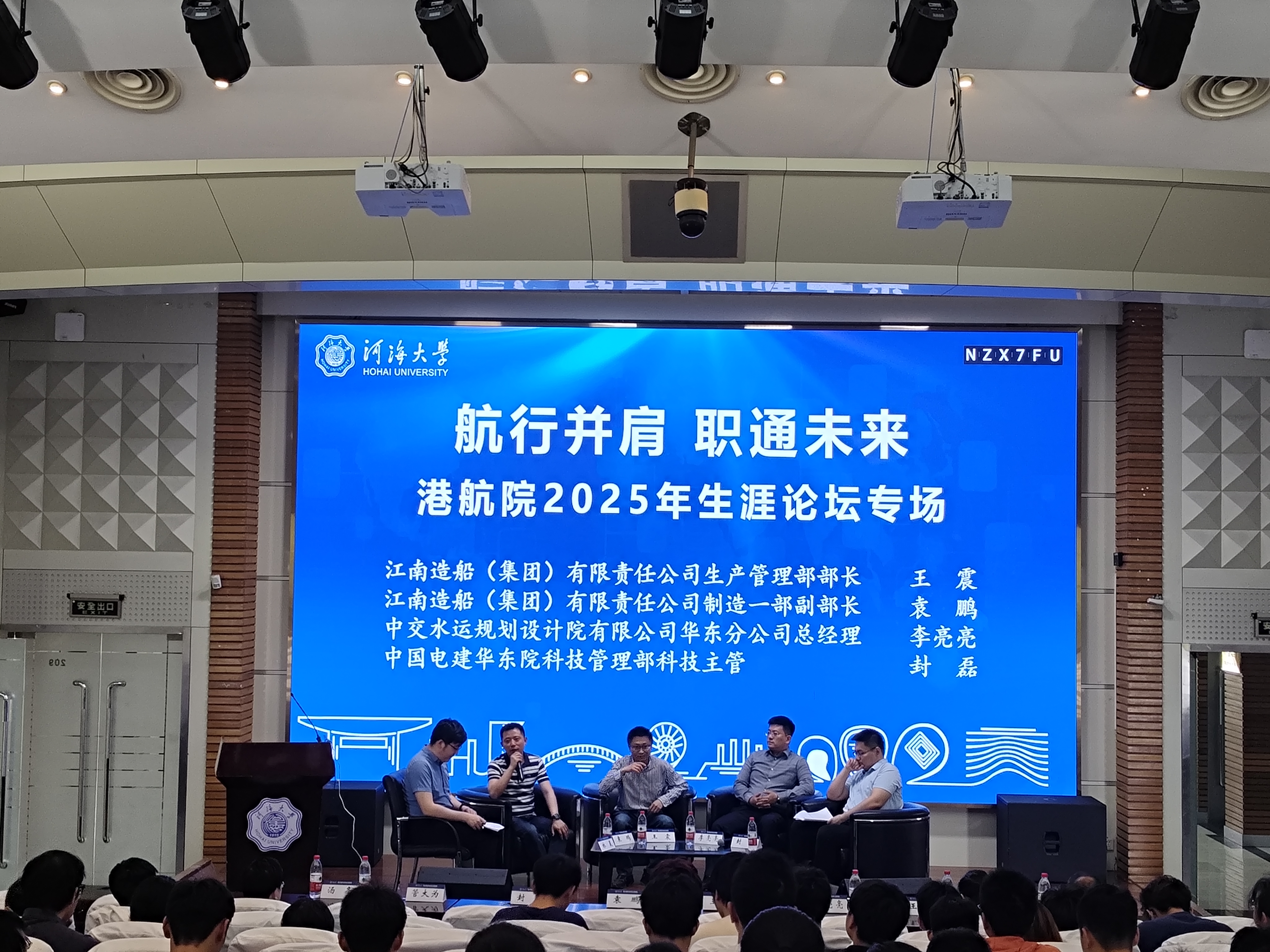 2025年4月19日,NT动漫 第三届“航行并肩 职通未来”生涯论坛在江宁会议中心举行,NT动漫 副院长管大为、NT动漫 党委副书记王玲、船舶与海洋工程系主任汤冬、研究生辅导员林凡以及2024级全体本科生参加活动。活动由2024级辅导员林晨主持。