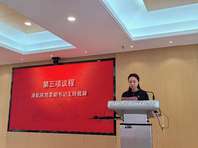 院党委副书记王玲出席并致辞,王玲副书记代表学院党委向各位领导、来宾和代表表示热烈的欢迎,对研究生会过去一年紧扣 “立德树人” 根本任务,在思想引领、学术创新、实践服务、组织建设等方面所取得的亮眼成果给予高度评价并表示祝贺。