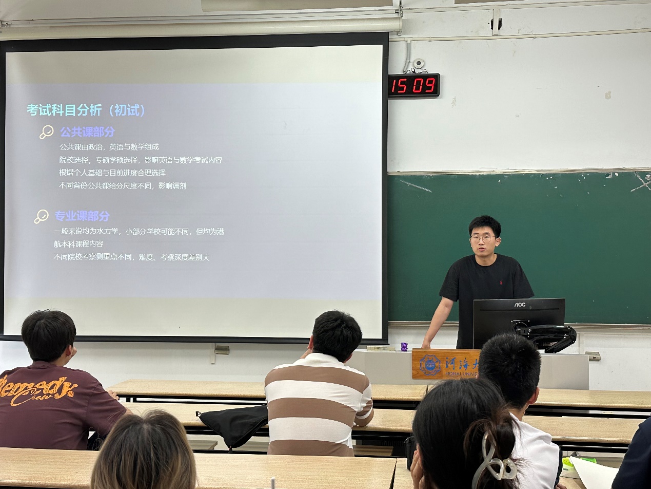 6月16日下午,学院于江宁校区博学楼B202举办升学就业分享会,2021级王诗洋、尹无鸣、张良栋、秦玥辰四位同学分享升学与就业的经验。