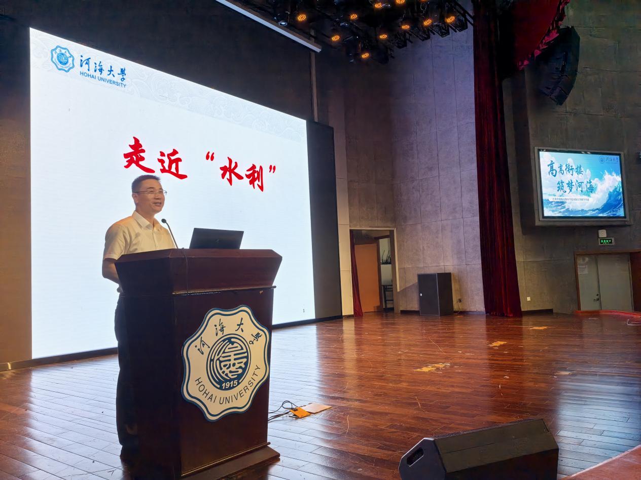 龚政院长为研学团讲授了题为《走近“水利”》的讲座。龚院长以连云港地区的地理环境入手,为同学们深入浅出地讲解了我国的地理特点和发展需要,梳理了我国的流域特点及调配工程,分析了水电开发现状及未来发展趋势,讲解了三峡大坝等著名水利枢纽的内部结构、价值意义,阐述了航运在“一带一路”倡议背景下的优势特点、船舶行业发展趋势、长江口深水航道整治工程的经济民生效益、我国港口建设情况,通过视频与图文具体介绍了洋山深水港、港珠澳大桥、深中通道等国之重器,带领同学们生动感受到水利工程的魅力和NT动漫 的办学内涵与学科优势。