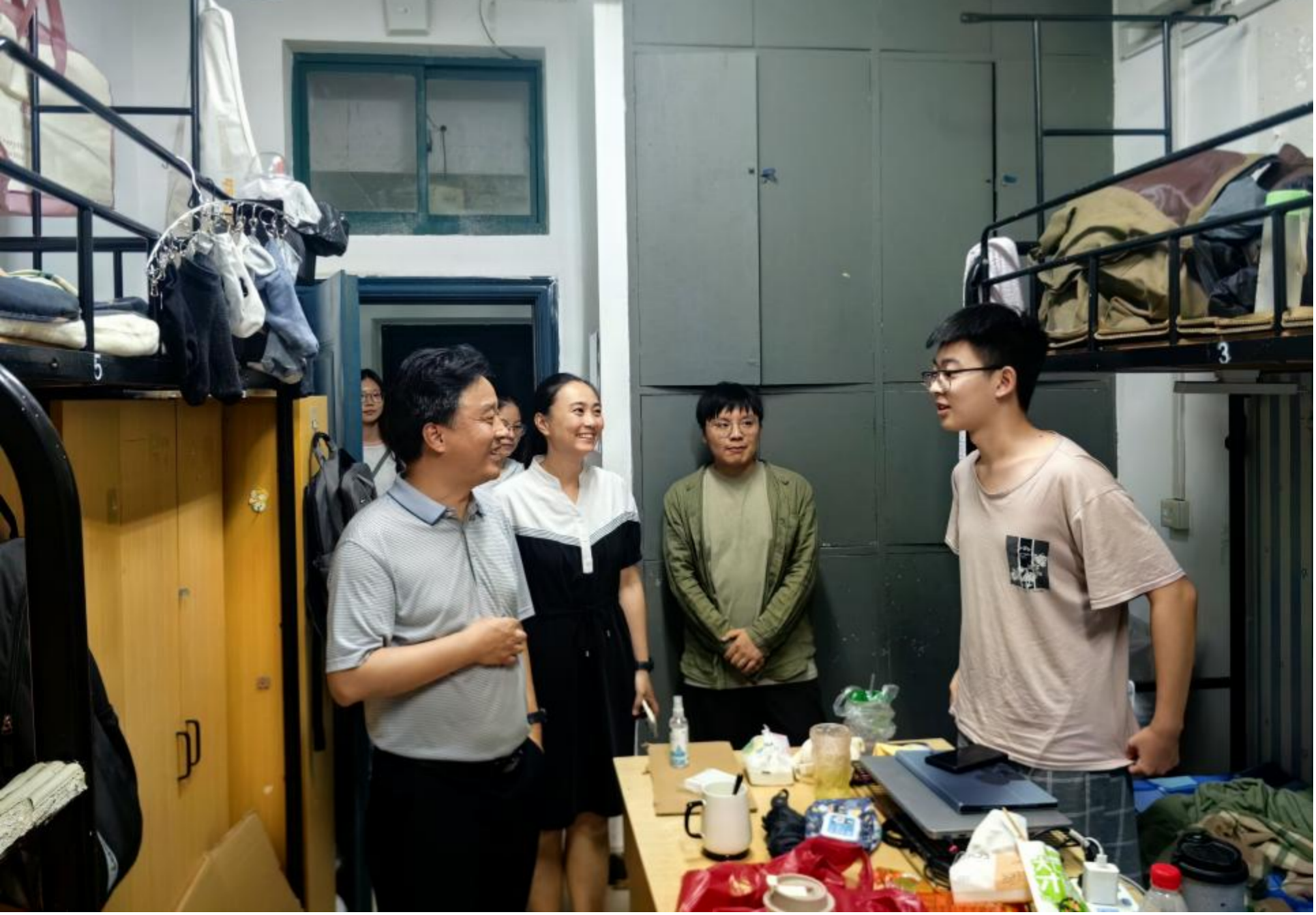 “大家能够住在一起是一种缘分,一定要珍惜这份同学情,互相关心、互相帮助,共同成长”,张书记亲切地对同学们说。他勉励同学们尽快适应新校区的生活环境,充分利用校区资源开启新阶段的学习生活,同时严格遵守学生宿舍各项管理规定,共同营造安全、整洁的居住氛围。