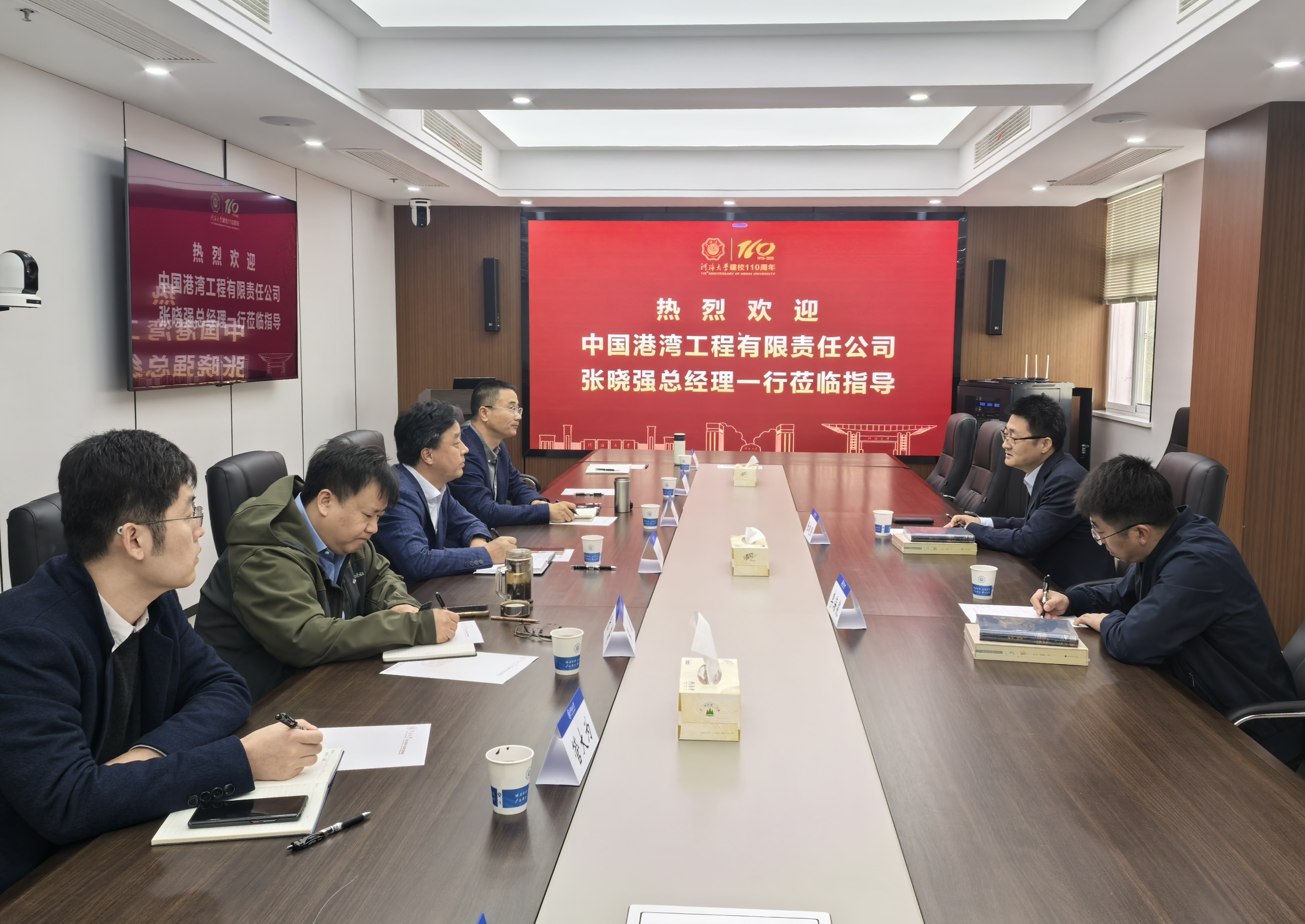 张晓强总经理介绍了中国港湾工程有限责任公司近年来发展取得的成绩,感谢学校长期以来为公司在人才招聘、科研合作等方面所做的贡献,公司将进一步加强与学校学院的交流合作。