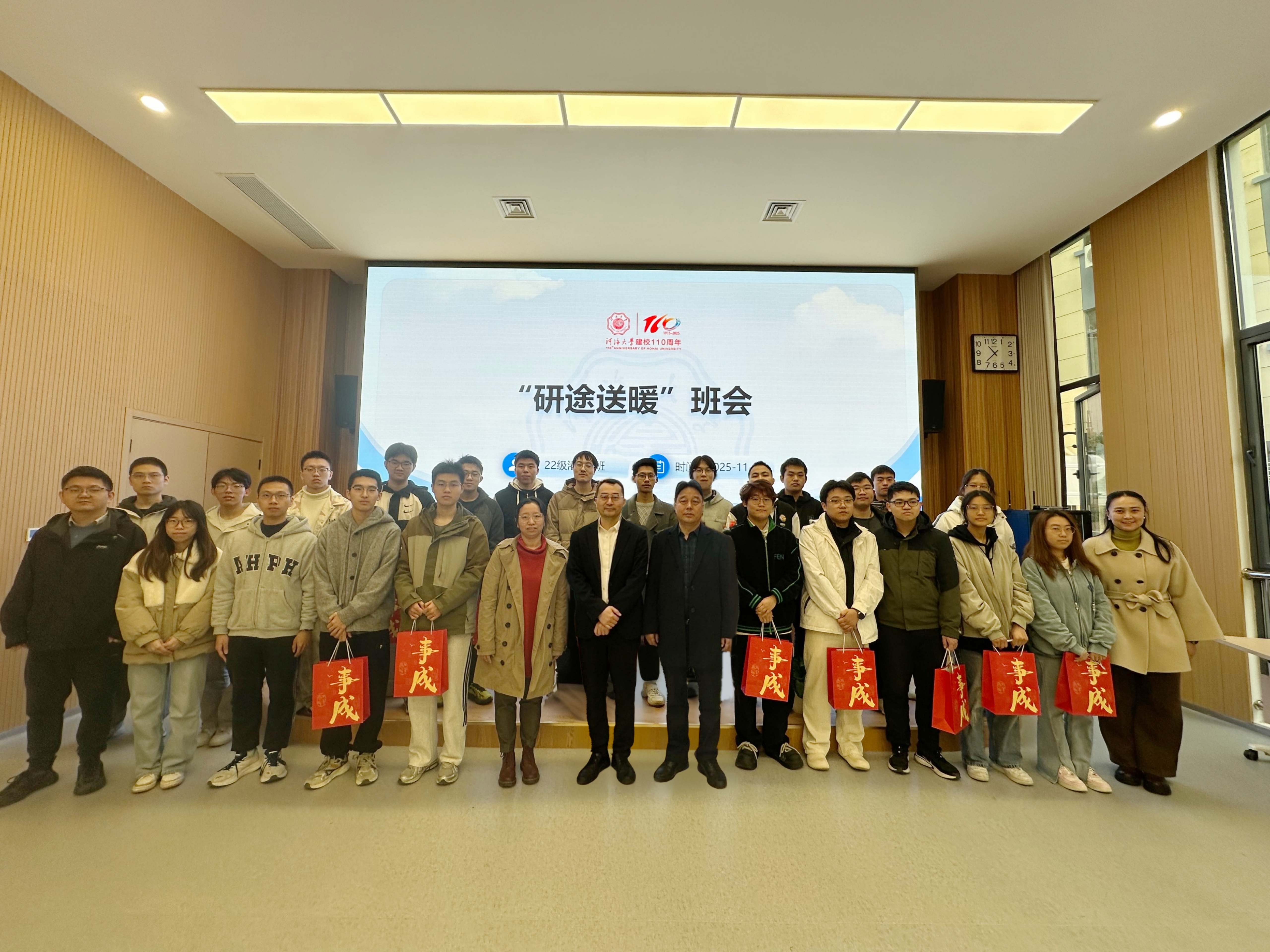 2025年11月17日上午,2022级港航4班“研途送暖”主题班会在西康路校区夏金仙学生服务中心101会议室举行。NT动漫 副校长陈达、NT动漫 党委书记张雪刚、NT动漫 党委副书记王玲、党政办刘畅、NT动漫 辅导员顾钰恒出席活动。活动由班导师张炫主持。