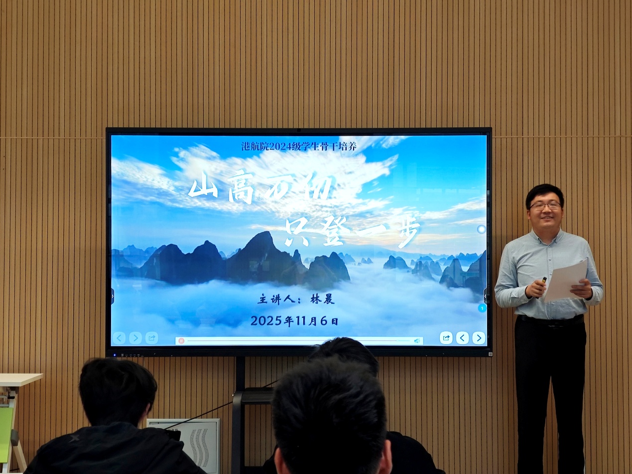 本次培训由2024级辅导员林晨老师主讲。林老师借助精心准备的PPT,针对骨干工作的不同方面展开培训。工作意识方面,林老师着重强调闭环意识、因人施策意识、结果导向意识、表率意识,让学生骨干明白工作需有始有终、注重反馈,引导大家根据不同情况灵活调整工作方法,聚焦工作成效,以身作则。工作礼仪方面,林老师详细讲解职场礼仪和交流技巧,还对通知发放提出规范要求。此外,培训还涵盖常用软件、活动策划、拍照要求及文书撰写等内容,全方位提升学生骨干的专业素养。